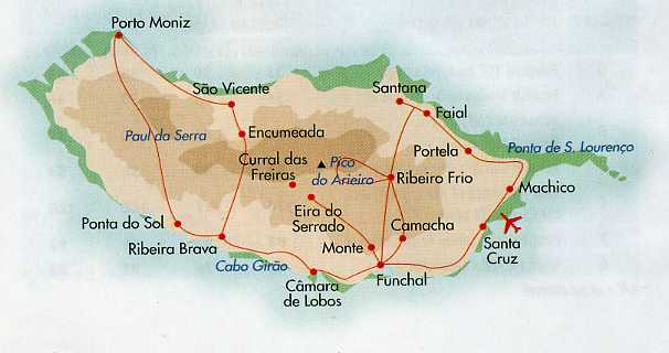 L'aprèsmidi, découverte de Santana, petit village célèbre pour ses maisons au toit de chaume. Continuation par la route qui serpente le long de la falaise et d'où l'on découvre les cultures en terrasse. Courte halte au belvédère de Portela avant de repartir vers Caniçal et la superbe pointe de São Lourenço. Retour à Funchal par Machico qui fut la première capitale de l'île.