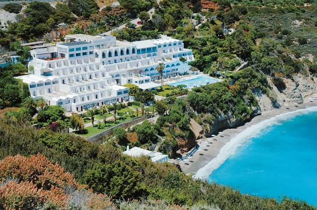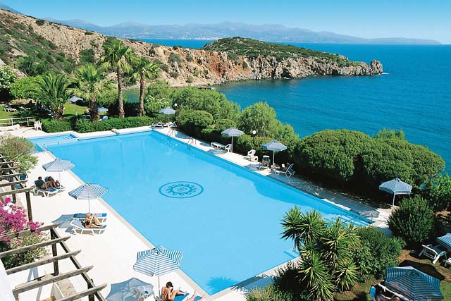 Ce club Héliades est doté d'un cadre superbe : construit à flanc de colline, il offre une vue imprenable sur la baie de Mirabello, au coeur d'une végétation luxuriante, en bordure d'une belle plage.